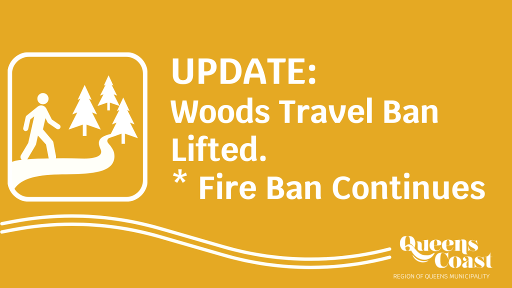 August 5, 2025: In support of the Province of Nova Scotia restricting travel and activities in wooded areas, Region of Queens Municipality is closing municipal trails and wooded areas of municipal parks, effective immediately, Tuesday, August 5, 2025 through to 2 p.m., Wednesday, October 15, 2025.