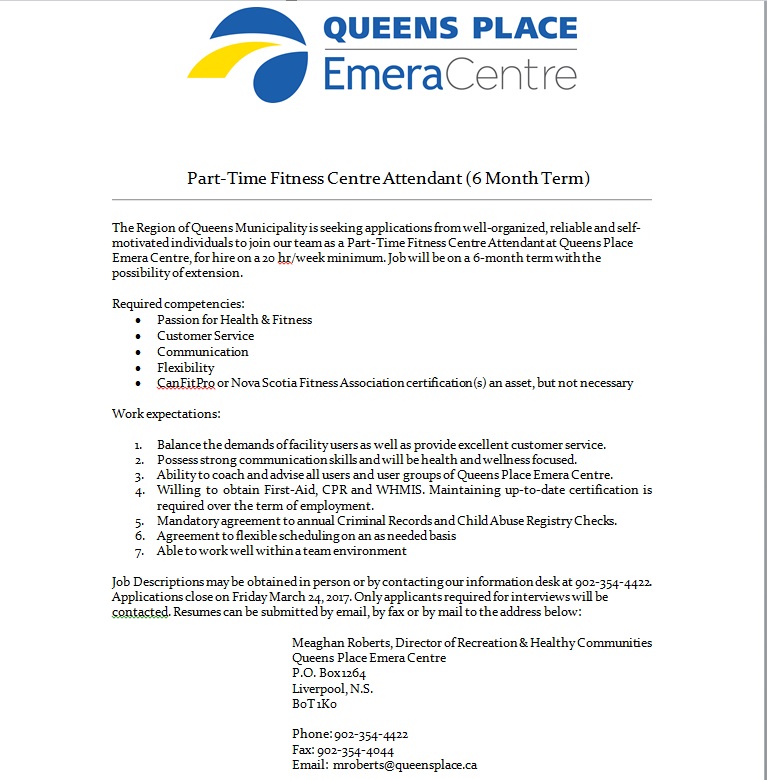 Home » Queens Place Emera Centre Folder Queens Place Emera Centre Home » Queens Place Emera Centre » Jan 2017 Group Fitness Class List pdf Jan 2017 Group Fitness Class List Published on 16 December 2016 Modified on 16 December 2016 By Anonymous 2045 downloads Download (pdf, 348 KB) Group Fitness Class List Jan-March.pdf Home » Queens Place Emera Centre » Job Ad Part Time Fitness Mar 2017 Image Job Ad Part Time Fitness Mar 2017 Published on 07 March 2017 Modified on 07 March 2017 By Anonymous 263 downloads Download (jpg, 167 KB) Part-Time Fitness Attendant.jpg Home » Queens Place Emera Centre » Job Posting Regular PT ESW pdf Job Posting Regular PT ESW Published on 24 April 2025 Modified on 24 April 2025 By Heather Cook 124 downloads Download (pdf, 113 KB) Job Posting Regular PT ESW 2021.pdf Home » Queens Place Emera Centre » Job Posting Regular PT ESW 2021 pdf Job Posting Regular PT ESW 2021 Published on 24 April 2025 Modified on 24 April 2025 By Heather Cook 125 downloads Download (pdf, 113 KB) Job Posting Regular PT ESW 2021 (1).pdf Home » Queens Place Emera Centre » Job Posting Regular PT ESW 2021 pdf Job Posting Regular PT ESW 2021 Published on 24 April 2025 Modified on 24 April 2025 By Heather Cook 474 downloads Download (pdf, 113 KB) Job Posting Regular PT ESW 2021 (1).pdf Home » Queens Place Emera Centre » LBDC Library layout 4 public pdf LBDC Library layout 4 public Published on 13 May 2025 Modified on 13 May 2025 By Heather Cook 128 downloads Download (pdf, 281 KB) LBDC Library layout 4 public.pdf Home » Queens Place Emera Centre » March 11 2025 Agenda Package pdf March 11 2025 Agenda Package Published on 10 March 2025 By Heather Cook 450 downloads Download (pdf, 2.67 MB) 2025-03-11 – Agenda Package FINAL.pdf Home » Queens Place Emera Centre » Online Banking Payments Dog Registration pdf Online Banking Payments Dog Registration Published on 07 April 2025 Modified on 07 April 2025 By Heather Cook 341 downloads Download (pdf, 46 KB) Online Banking Payments Dog Registration.pdf Home » Queens Place Emera Centre » Operational Policy 100 Litter Collection Program Guidelines FILLABLE pdf Operational Policy 100 Litter Collection Program Guidelines FILLABLE Published on 14 April 2026 Modified on 14 April 2026 By Dana Henley 26 downloads Download (pdf, 139 KB) 2026-03-24 Operational Policy 100 – Litter Collection Program Guidelines FILLABLE.pdf Home » Queens Place Emera Centre » Part time Bylaw Enforcement Officer Job Ad pdf Part time Bylaw Enforcement Officer Job Ad Published on 11 July 2024 By Angela Green 438 downloads Download (pdf, 167 KB) Part time Bylaw Enforcement Officer Job Ad.pdf Home » Queens Place Emera Centre » Part Time CSR Job Ad pdf Part Time CSR Job Ad Published on 03 April 2017 By Anonymous 311 downloads Download (pdf, 72 KB) Part Time CSR Job Ad.pdf Home » Queens Place Emera Centre » Partner POUND Image Partner POUND Published on 23 May 2017 Modified on 23 May 2017 By Anonymous 343 downloads Download (png, 1.61 MB) Partner Pound.png Home » Queens Place Emera Centre » Personal Training Packages pdf Personal Training Packages Published on 19 September 2012 By Anonymous 1802 downloads Download (pdf, 60 KB) QUEENS PLACE EMERA CENTRE – Personal Training – Pricing and Structure.pdf Home » Queens Place Emera Centre » Personal Training Pricing Structure Image Personal Training Pricing Structure Published on 17 June 2016 Modified on 17 June 2016 By Anonymous 302 downloads Download (jpg, 1.16 MB) Personal Training (1).jpg Home » Queens Place Emera Centre » Position Description – Assistant Supervisor, North Queens Aquatic Centre 2025 (Final) pdf Position Description – Assistant Supervisor, North Queens Aquatic Centre 2025 (Final) Published on 13 May 2025 Modified on 13 May 2025 By Heather Cook 313 downloads Download (pdf, 81 KB) Position Description – Assistant Supervisor – North Queens Aquatic Centre 2025 (Final).pdf Home » Queens Place Emera Centre » Position Description – Instructor and Lifeguard, North Queens Aquatic Centre 2025 (Final) pdf Position Description – Instructor and Lifeguard, North Queens Aquatic Centre 2025 (Final) Published on 13 May 2025 Modified on 13 May 2025 By Heather Cook 263 downloads Download (pdf, 76 KB) Position Description – Instructor and Lifeguard – North Queens Aquatic Centre 2025 (Final).pdf Home » Queens Place Emera Centre » Presentation Application for Council and Committee Meetings pdf Presentation Application for Council and Committee Meetings Published on 25 August 2025 Modified on 25 August 2025 By Angela Green 330 downloads Download (pdf, 164 KB) Presentation Application.pdf Home » Queens Place Emera Centre » Press Conference invitation Feb. 28 pdf Press Conference invitation Feb. 28 Expired Published on 24 February 2017 By Anonymous 152 downloads Download (pdf, 142 KB) Invitation to Press Conference.pdf Home » Queens Place Emera Centre » Property Descriptions February 10 2026 pdf Property Descriptions February 10 2026 Published on 10 February 2026 Modified on 10 February 2026 By Heather Cook 206 downloads Download (pdf, 1.01 MB) Property Descriptions February 10.pdf Home » Queens Place Emera Centre » Q&A Town Halls 2025 pdf Q&A Town Halls 2025 Published on 29 October 2025 Modified on 29 October 2025 By Angela Green 242 downloads Download (pdf, 231 KB) Q&A Town Halls 2025.pdf «1234»